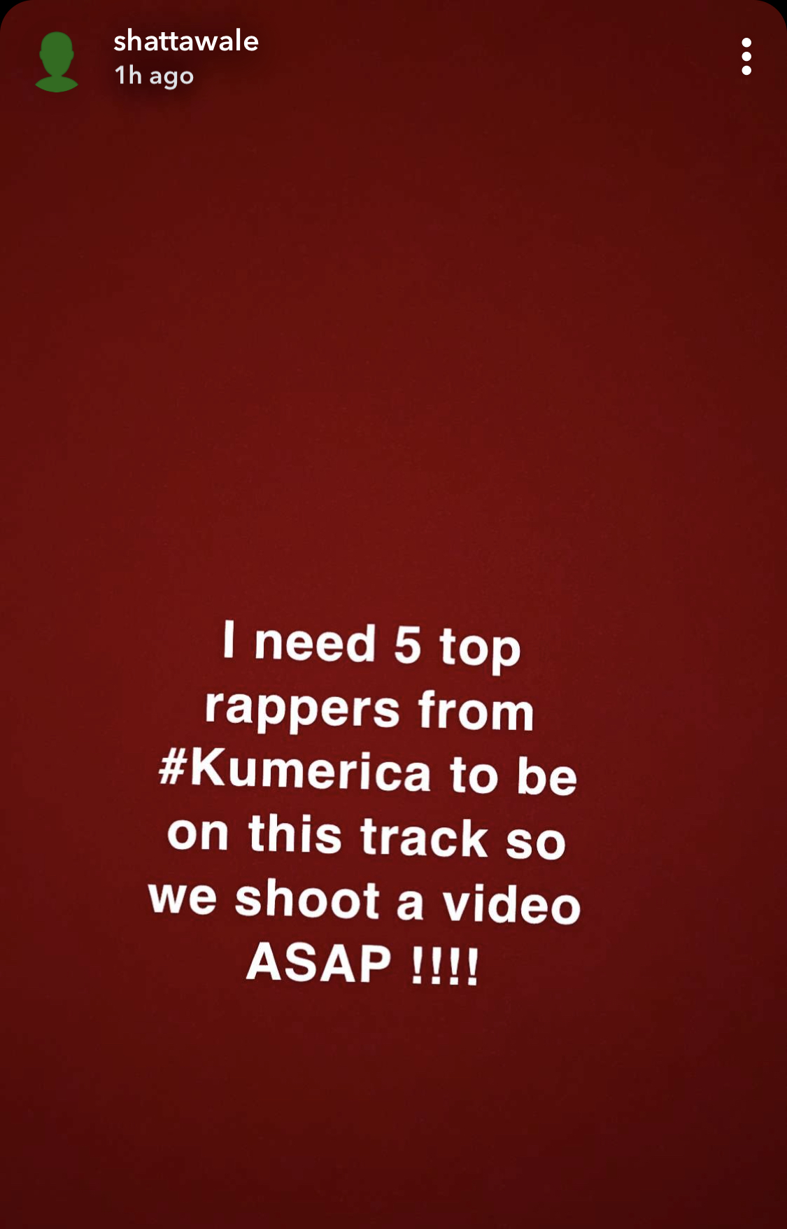 He is calling for five Kumericans to feature on the song to be able to shoot the video before the wave dies down.