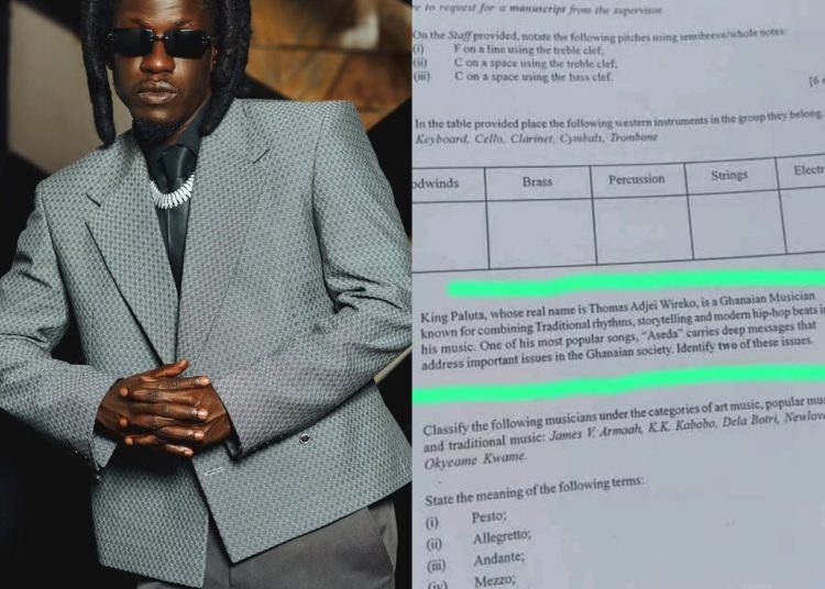 A question paper from the 2025 Basic Education Certificate Examination (BECE) has sparked widespread discussion online for featuring Ghanaian musician King Paluta.