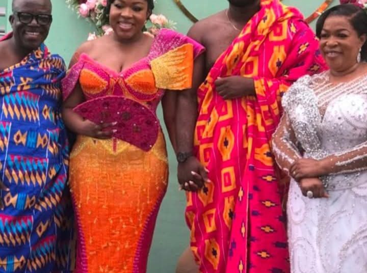 In videos sighted by Ghana Weekend on social media, the bride radiated elegance in a stunning multi-coloured Kente ensemble, while her groom, King, looked dashing in his regal Kente cloth.
