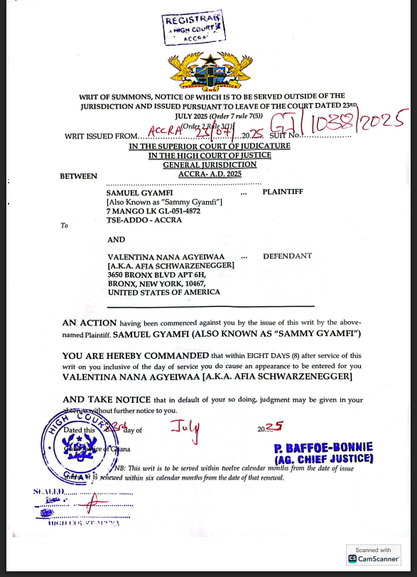 The Chief Executive Officer of the Ghana Gold Board (GoldBod), Sammy Gyamfi has sued media personality Afia Schwarzenegger, also known as Valentina Nana Agyeiwaa for defamation.